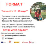 | 27 | 28 | 29 | 30Formacions per a joves d'entre 16 i 29 anysFormacions per a joves d'entre 16 i 29 anys Contingut: Vols formar-te en competències digitals, habilitats socials o de cambrer/-a de forma gratuïta?Vine a la Cambra i t'ajudem a formar-te per tal que puguis tenir millors opcions de feina/// Més informació a: pice@cambravalls.com o al 977 600 909/// | ||||||||||||