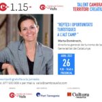Conferència 1.15: Reptes i oportunitats turístiques Alt CampConferència 1.15: Reptes i oportunitats turístiques Alt CampTime: 9:30 - 11:00 Col·loqui: Diàleg amb Marta Domènech, directora general de turisme de la Generalitat de Catalunya, Josep M. Rovira, director de la revista Cultura i Paisatge, i representants d'empreses turístiques de l'Alt Camp. Estarà moderat per la responsable de l'àrea de comunicació de la Cambra de Valls, Eva Salvat./// Dia: Dimecres 26 d'abril de 2023./// Hora: 09:30 hores///Lloc: Sala d'actes de la cambra de Comerç de valls./// Inscripcions: https://forms.gle/8sSVUgpnu57kj2ad7/// Programa: https://cambravalls.com/wp-content/uploads/2023/04/TUR-MARTADOEMENEC23.pdf///