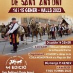 | 13 | 14Tres Tombs de Sant Antoni de VallsTres Tombs de Sant Antoni de VallsTime: 11:30 - 18:00 44a Edició dels Tres Tombs : Festa Tradicional d'Interès Nacional. Es tornaran a celebrar la cercavila de la vigília que agafa encara més protagonisme amb la commemoració del centenari de la bandera de la Societat de Sant Antoni de Valls, així com la gran festa del diumenge. A més, com a novetat, es podran contemplar dos carros històrics de gran bellesa que s'estrenaran en aquests Tres Tombs de Valls./// Hora: dissabte 18:30 hores i diumenge 11:30 hores./// Més informació: https://cambravalls.com/wp-content/uploads/2023/01/Nota-de-Premsa-Tres-Tombs-St.-Antoni-2023.pdf///