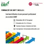 | 16 | 17 | 18 | 19 | 20Formació en Soft Skills per transformar equipsFormació en Soft Skills per transformar equips Objectius: aprendre a transformar els comportaments, les decisions i les habilitats de les persones que gestionen equips de treball per aconseguir millorar la competitivitat de l'empresa i la motivació de les persones treballadores./// Píndola 1: Com hem d’afrontar el canvi personal i professional en un entorn BANI/// Inici: 20 de gener del 2023/// Durada: 8 hores presencials./// Horaris: divendres de 15 a 19 hores/// Lloc d'impartició: Aula formativa Cambra de Comerç de Valls/// Programa i calendari del curs: https://cambravalls.com/wp-content/uploads/2022/11/PRESENTACIO-SOFT-SKILLS.pdf/// Inscripcions: formacio@cambravalls.com///