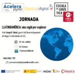 10Jornada: Llatinoamèrica, una regió per explorarJornada: Llatinoamèrica, una regió per explorarTime: 10:00 - 11:30 Continguts: La sessió servirà per parlar de continguts varis com els aranzels a tenir presents, experiència prèvia a la regió de Latam, mercats, elecció dels països, definició dels canals, serveis i l’experiència personal del ponent. La sessió forma part del cicle de jornades que organitza l’Oficina Accelera Pime de la Cambra de Valls a favor de la transformació digital de les empreses. La iniciativa està impulsada per red.es, Cámara de Comercio de España, Plan de Recuperación, Transformación y Resiliencia i la Unió Europea, a través dels Fons Europeus de Desenvolupament Regional./// Dia: Dilluns, 10 de juliol de 2023/// Hora: 10 hores/// Format: híbrid/// Sessió: gratuita/// Inscripcions: https://forms.gle/SukBZsDNRQ2cSxNR7///
