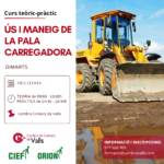 | 25 | 26Curs teòric - pràctic: ús i maneig de la pala carregadoraCurs teòric - pràctic: ús i maneig de la pala carregadoraTime: 9:00 - 18:30 Continguts: el curs et proporcionarà la formació necessària per a la utilització i la conducció segura i eficaç de pales carregadores. Aprendràs tot el necessari sobre les màquines, les càrregues, els moviments, el manteniment i la seguretat, perquè puguis realitzar la feina de manera professional i productiva./// Dies: dimarts 26 de novembre de 2024/// Durada: 8 hores/// Horari: teoria de 9h a 13h a l'aula formativa de la Cambra de Valls, i pràctica de 14:30h a 1:30h a Grup Valex/// Inscripcions: formacio@cambravalls.com///