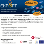 GO EXPORT: Eines per internacionalitzar la teva empresaGO EXPORT: Eines per internacionalitzar la teva empresaTime: 10:00 - 11:30 Seminari en línia: La jornada tractarà de perquè internacionalitzar-se, de com definir l'estratègia internacional, de com fer un check list per iniciar-se a l'exportació, així com dels recursos i els serveis de suport per a la internacionalització. Si estàs pensant en comernçar a exportar, no et perdis la jornada! una acció que s'emmarca dins del Pla d'Acció Internacional del Consell GFeneral de Cambres de Comerç de Catalunya i amb la coordinació d'ACCIÓ. Les jornades GO EXPORT tenen l'objectiu d'ajudar a iniciar o consolidar l'activitat internacional de les empreses i s'adrecen a qualsevol sector./// Dia: Dimarts 26 de novembre de 2024/// Horari: 10 hores/// Format: online/// Inscripcions: https://forms.gle/YZkD3D99pGb2Vrr19///