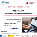 | 23JORNADA ACELERA PIME: Web ScrapingJORNADA ACELERA PIME: Web ScrapingTime: 12:00 - 13:00 Continguts: L'eina clau per aconseguir leads de qualitat. Una sessió impartida per Théo Guillaumin, cofundador i CEO de Beyond Growth. Ens parlarà de com recopilar automàticament dades de pàgines web per obtenir informació sobre potencials clients; presentarà eines avançades de web scraping; introduirà el concepte de web scraping i les seves aplicacions; farà una selecció d’eines i explicarà com configurar-les; i també destacarà els mètodes i tècniques més útils per extreure informació de pàgines web./// Dia: Dimecres 23 d'octubre de 2024/// Hora: 12:00 hores/// Format: webinar/// Sessió: gratuita/// Inscripcions: https://forms.gle/AM8PzkJFXgECH4EE7///