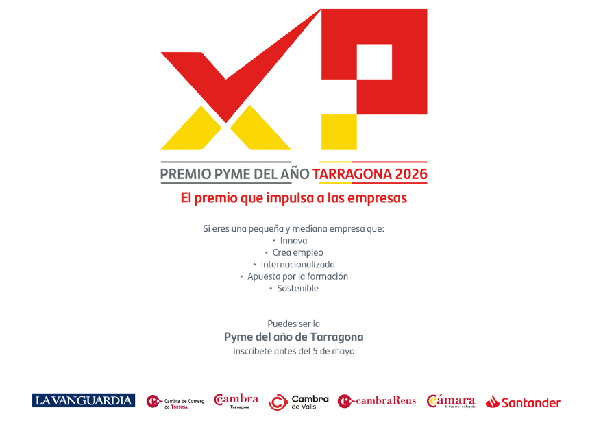 La Cambra de Comerç d’Espanya, les cambres de Tarragona, Reus, Valls i Tortosa, i el Banco Santander han anunciat l’obertura de la convocatòria del Premi Pime de l’Any 2026 de Tarragona. Aquest guardó té com a objectiu posar en valor el teixit empresarial de la província, especialment aquelles empreses que contribueixen al desenvolupament econòmic i social del territori.